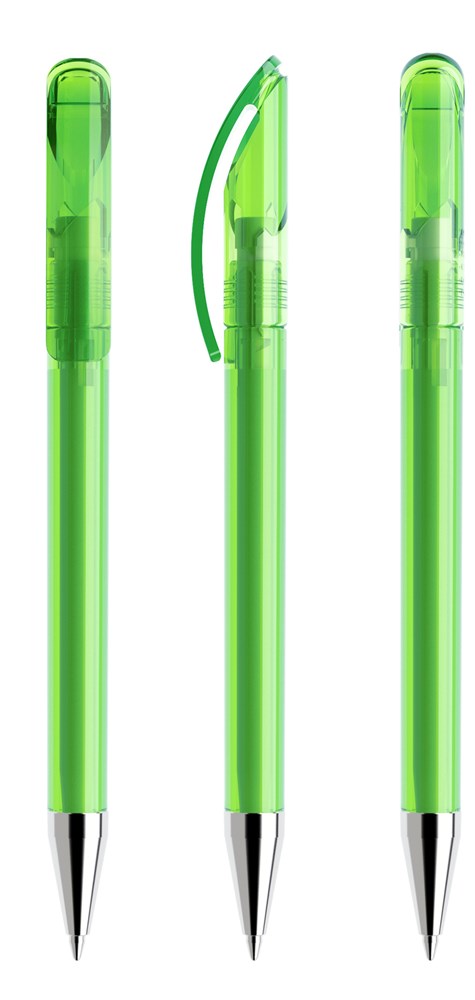 Prodir DS3TTC Transparent with Chrome Metal Nose-ConeLight Green transparant