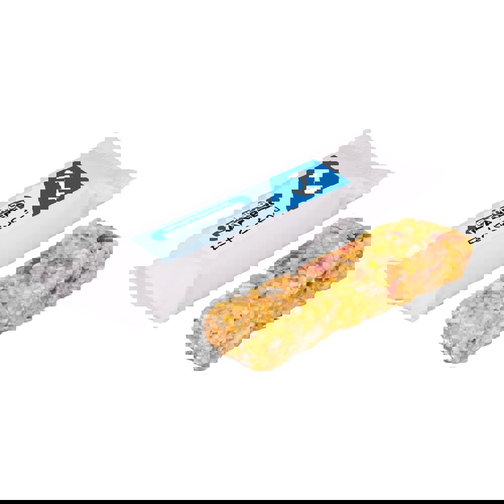 Müsli Riegel Apfelgeschmack, mit 4c-Euroskala Aufkleber auf der Oberseite