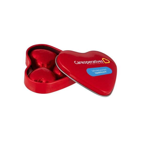 Herzförmige Dose mit Schokoladenherzen