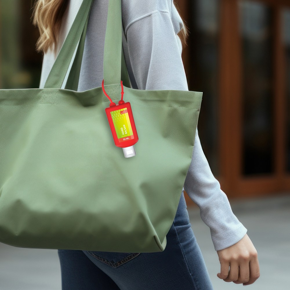 Das Fläschchen mit Silikonhülle ist nicht nur optisch ein echter Hingucker! Raffiniert mit Schlaufe zum Anhängenan die Handtasche, an den Rucksack oder an den Trolli.