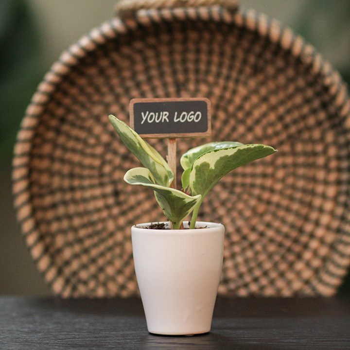 Wie cool sind diese Schreibtischpflanzen, kombiniert mit einem eingesteckten ChalkNotes®-Pflanzenstecker, der vollständig personalisierbar ist? ChalkNotes® sind unverwechselbare Pflanzenstecker – jedoch mit deinem Logo, deiner Botschaft oder deinem Namen versehen. Die Personalisierung ist langlebig: Was einmal draufsteht, bleibt bestehen. Sie setzen ein auffälliges Highlight bei unseren kompakten, nachhaltigen Pflanzen und machen jedes grüne Geschenk ein Stück persönlicher.