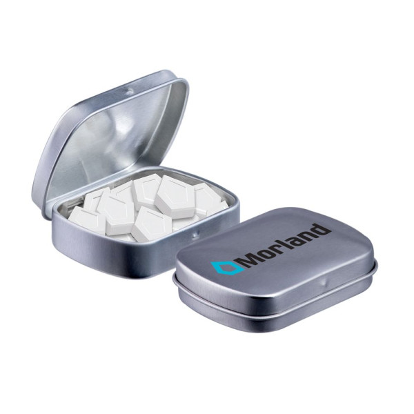 Mini hinged tin logo mints