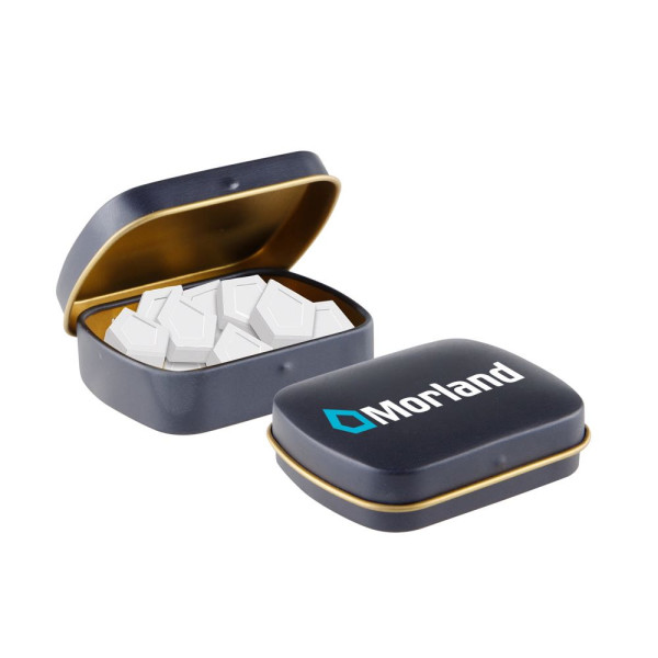Mini hinged tin logo mints