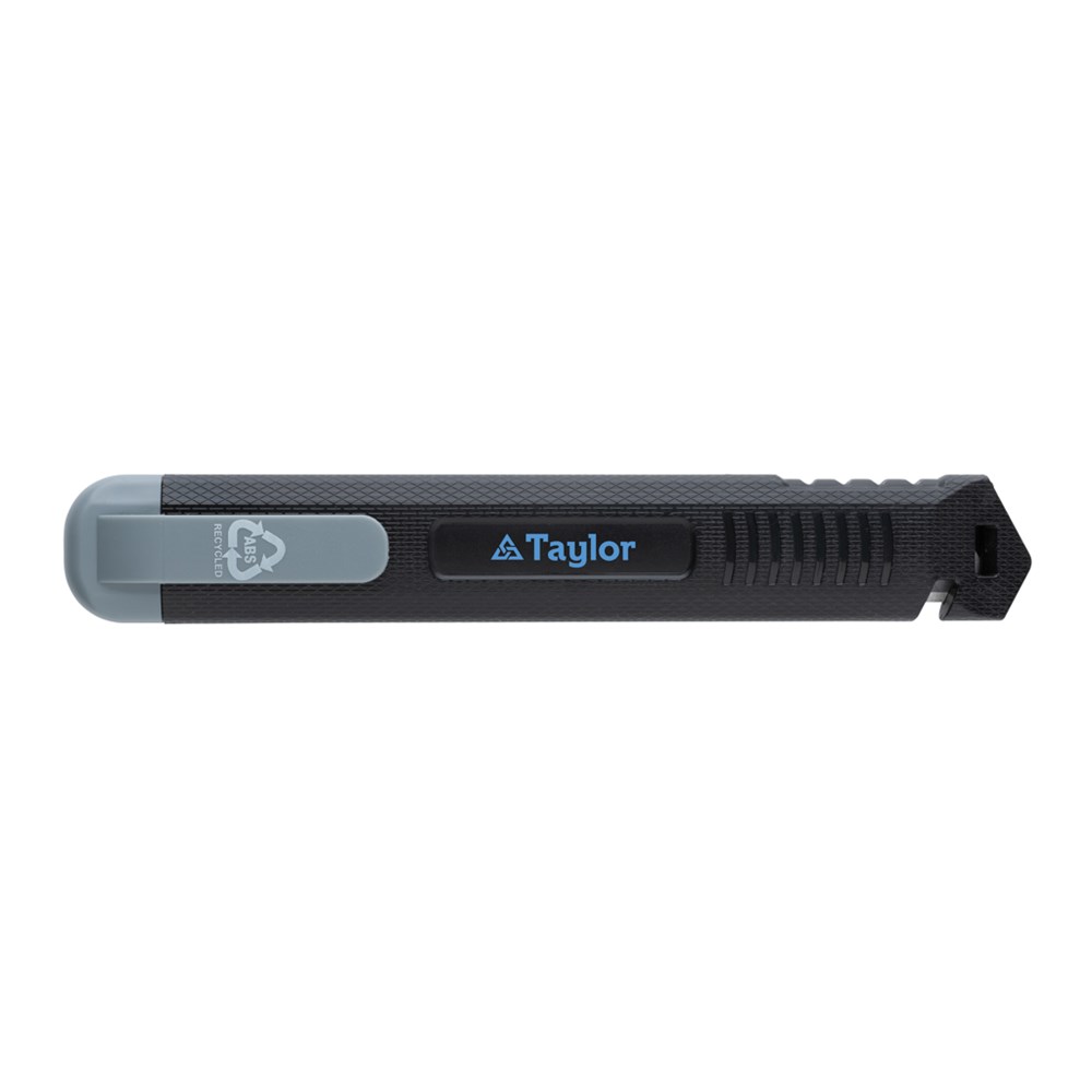 Refillable RCS certified recycled plastic snap-off knife made with RCS (Recycled Claim Standard) certified recycled ABS and stainless steel blade. Total recycled content: 78% based on total item weight. RCS certification ensures a completely certified supply chain of the recycled materials. This versatile knife features a snap-off blade design, allowing you to easily replace the SK4 blade when it becomes dull. Whether you need to cut through cardboard, plastic, or even thin sheets of metal, the snap-off knife is up to the task. The sharp, durable blade ensures that you'll get clean, precise cuts every time. The knife is also incredibly easy to use. The comfortable handle provides a secure grip, allowing you to maintain complete control as you cut. Plus, the lightweight design makes it easy to carry with you wherever you go. Packed in FSC® mix kraft package.