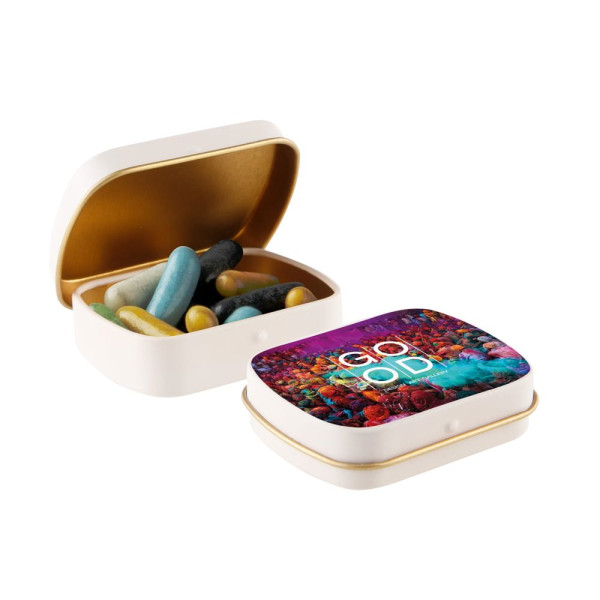 Mini hinge tin with candy