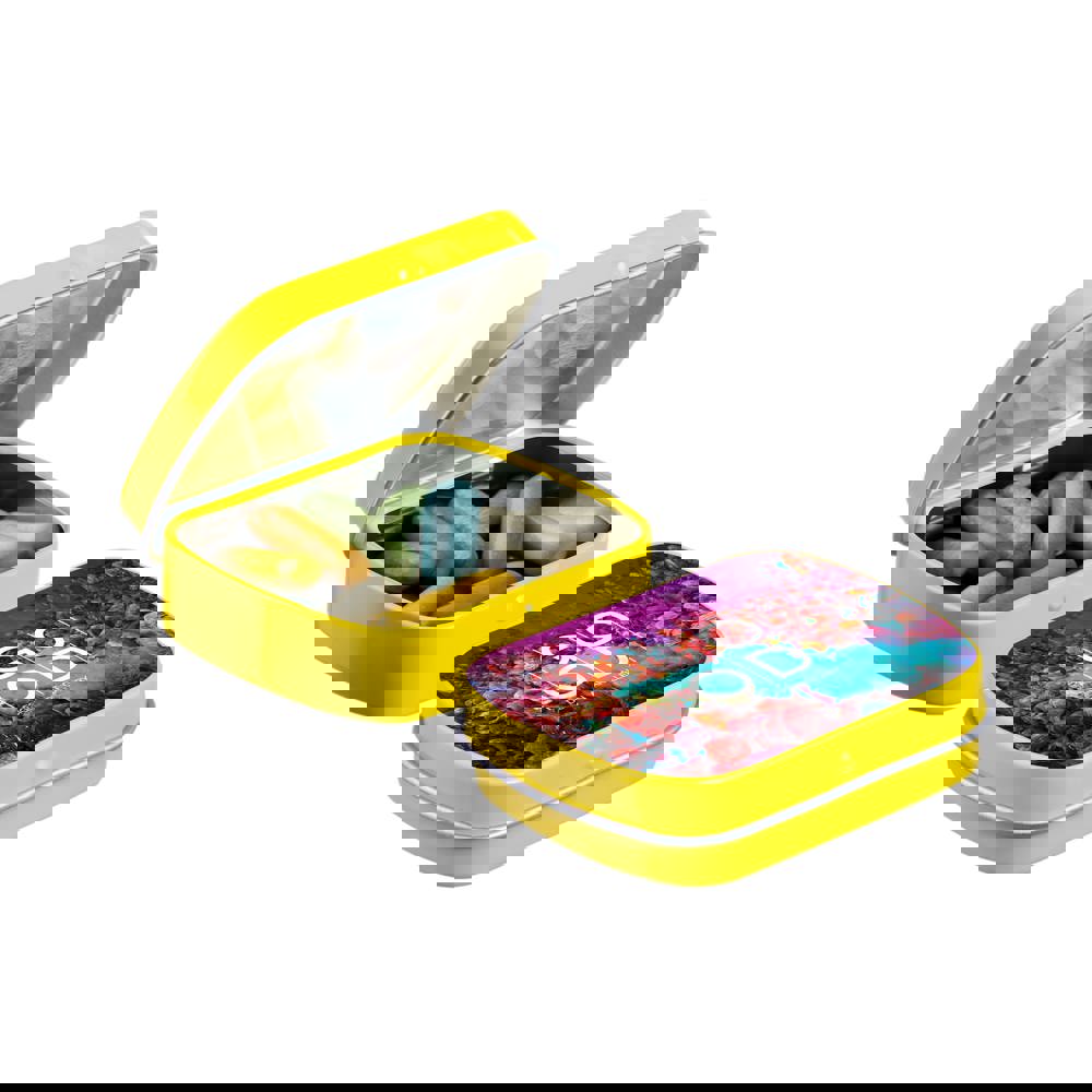 Mini hinge tin with candy