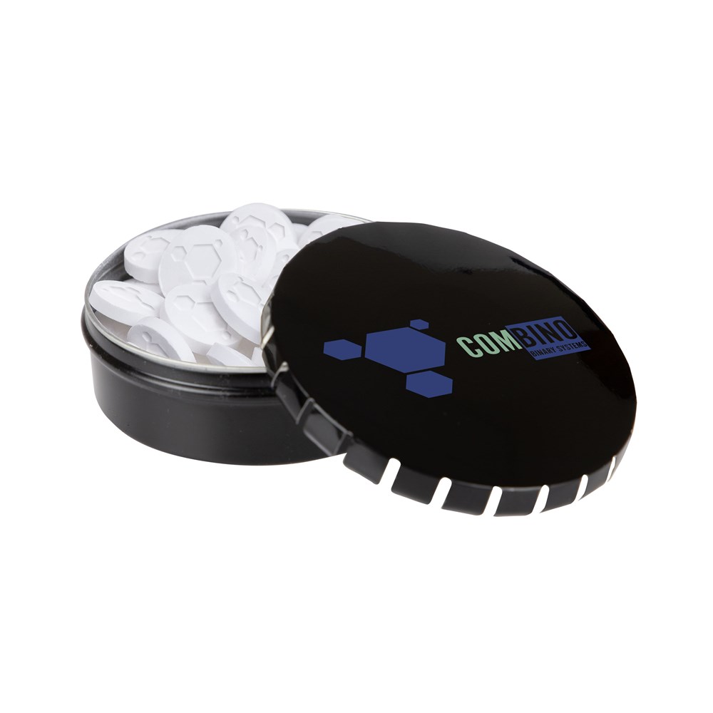 Round tin logo mints