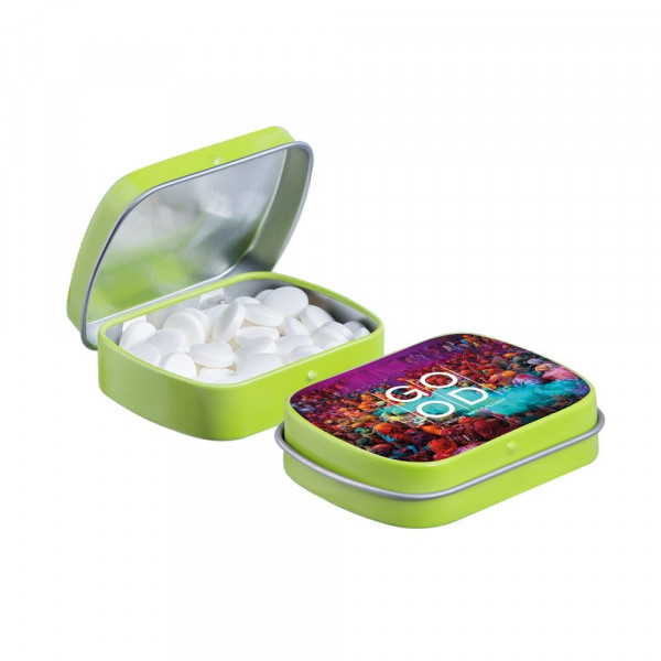 Mini hinge tin filled with peppermint