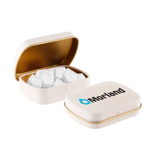 Mini hinged tin logo mints