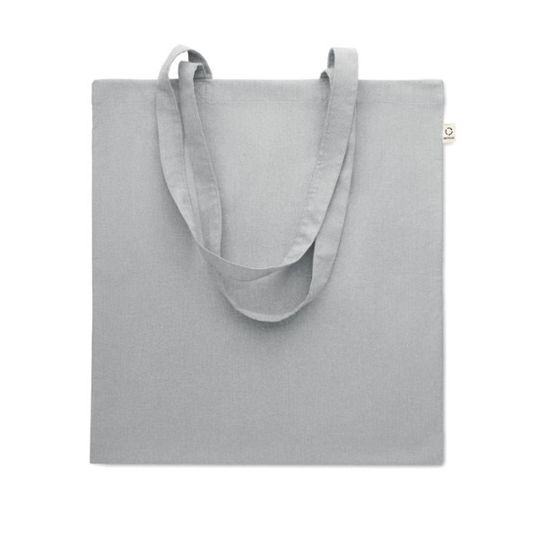 Sac shopping en coton recyclé pré-consommation (70 % coton recyclé et 30 % RPET) avec anses longues. 140 gr/m². Cet article peut rétrécir après avoir imprimé.