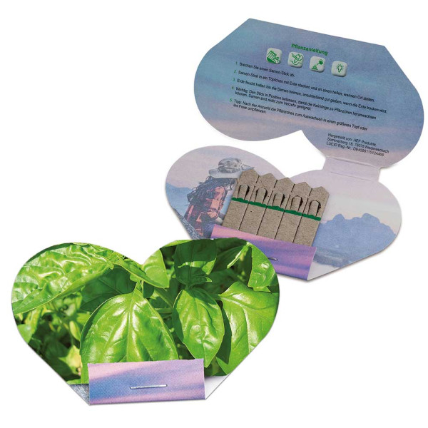Basilicum, een mengsel van wilde bloemen of kruiden kan worden aangebracht op vijf kleine papieren stokjes. Wanneer een stokje in de grond wordt gezet en water krijgt, zal er snel een plantje uitlopen. In de vorm van een hart, een standaardletter of een grappig bijtje kunnen zij met hun vorm de boodschap ondersteunen en worden aangepast aan het reclamethema. De letter zelf kan aan vier zijden worden gepersonaliseerd. Het papier is volledig biologisch afbreekbaar en ondersteunt opnieuw de groene reclame-gedachte. Een plantwijzer maakt het groene promotieartikel compleet.