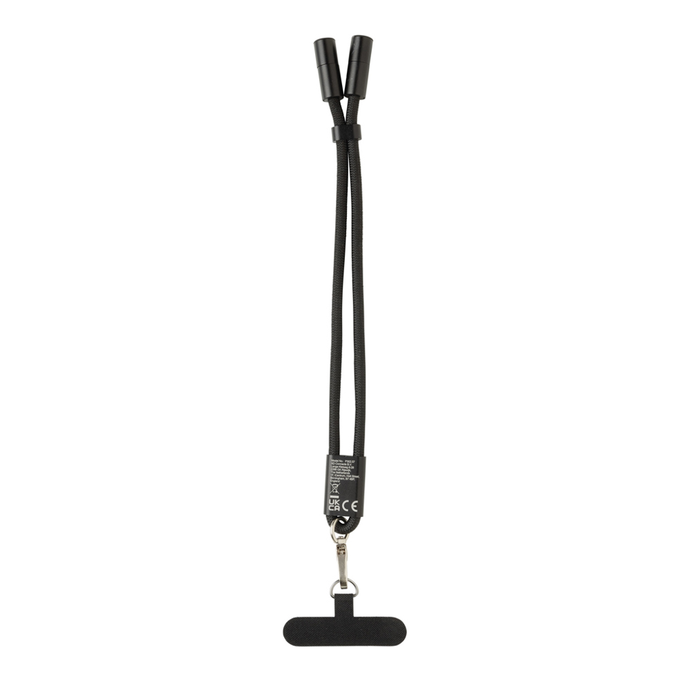 Maak kennis met LoopAmp, een polsarmband gemaakt van RCS-gecertificeerd RPET. RCS (Recycled Claim Standard) is een standaard om het gerecyclede aandeel van een product in de gehele toeleveringsketen te verifiëren. Totaal gerecycled aandeel: 78% op basis van het totale artikelgewicht. Gemaakt als een hoogwaardige polsband, wikkelt het zeer sterke koord zich comfortabel om uw pols en beschermen de nauwkeurig vervaardigde verbindingsring en -haak tegen onbedoelde vallen - ideaal voor handsfree gemak tijdens uw dagelijkse woon-werkverkeer, trainingen of snelle boodschappen. LoopAmp kan ook worden gebruikt als een USB-C-oplaadkabel met tot 60 W snellaadvermogen. Laad uw smartphone, tablet of zelfs een laptop moeiteloos op met toonaangevende efficiëntie, dankzij versterkte connectoren en ultra-duurzame materialen, ontworpen voor betrouwbare dagelijkse prestaties. Geniet van de perfecte mix van veiligheid, vrijheid en krachtig opladen met LoopAmp. Ondersteunt gegevensoverdracht. PVC-vrij.